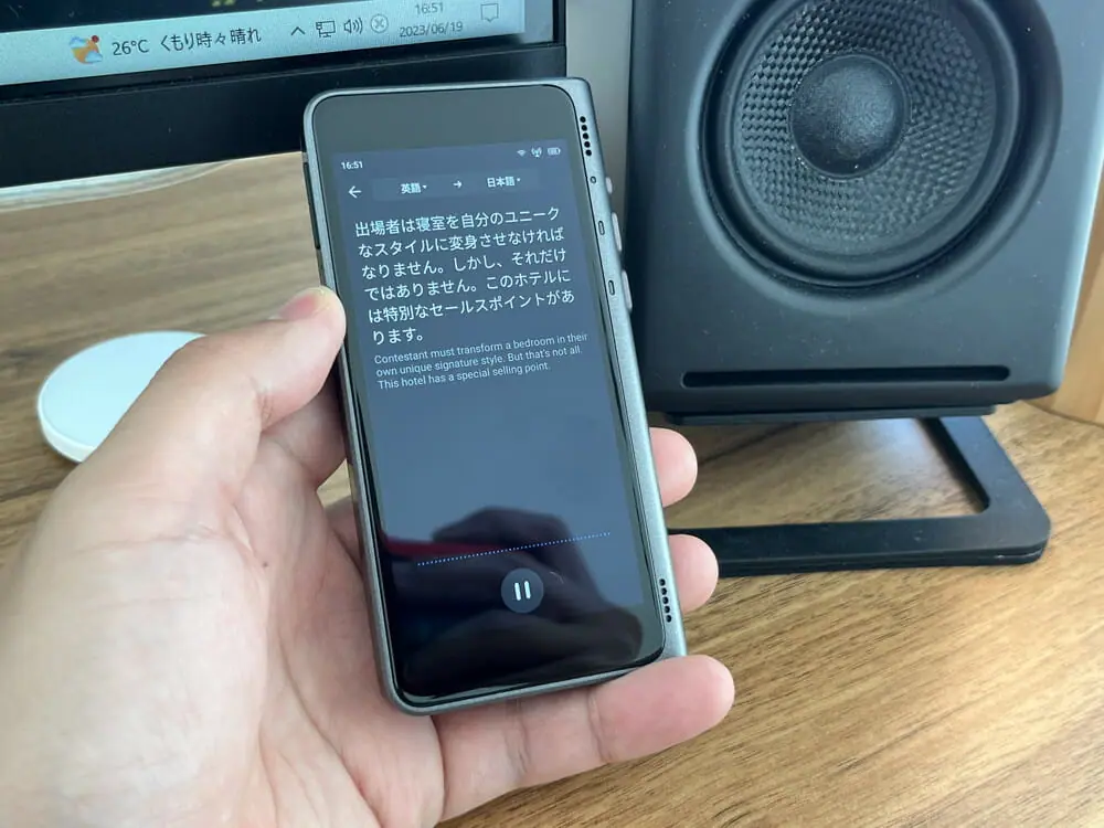 なお、今回のレビュー時には外国人の知り合いを呼び、筆者(日本語)⇔ 知り合い(英語)の会話の翻訳をテストした。