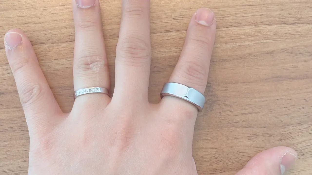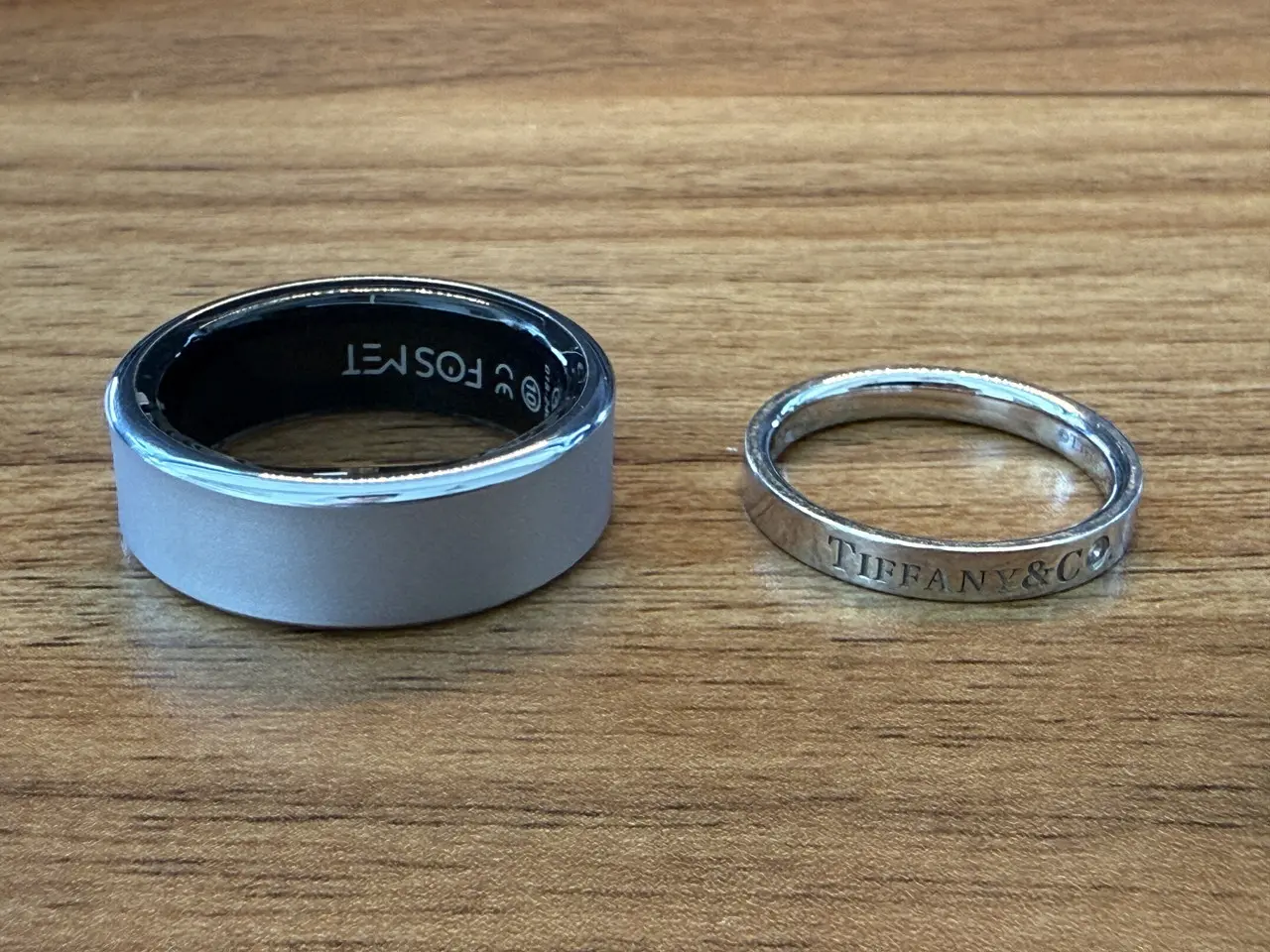 ▼一般的な指輪と比べると、FOSMET RINGXの方がサイズ感・厚みともに存在感がある。