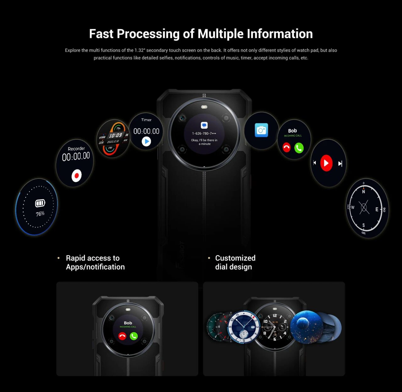 背面にセカンダリースクリーンを搭載したAndroidスマートフォンであり、IP68/IP69K等級の防水性能、およびSTD-MIL-810Hの耐衝撃性能を備えるほか、10,600mAhの大容量バッテリーを内蔵。5G通信にも対応しており、アウトドア利用に特化したタフネススマホとなっている。