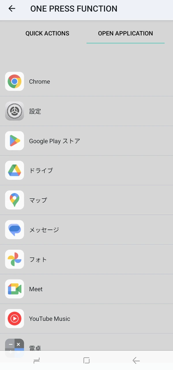 ▼カスタムボタンから好みのアプリをクイック起動することができる。