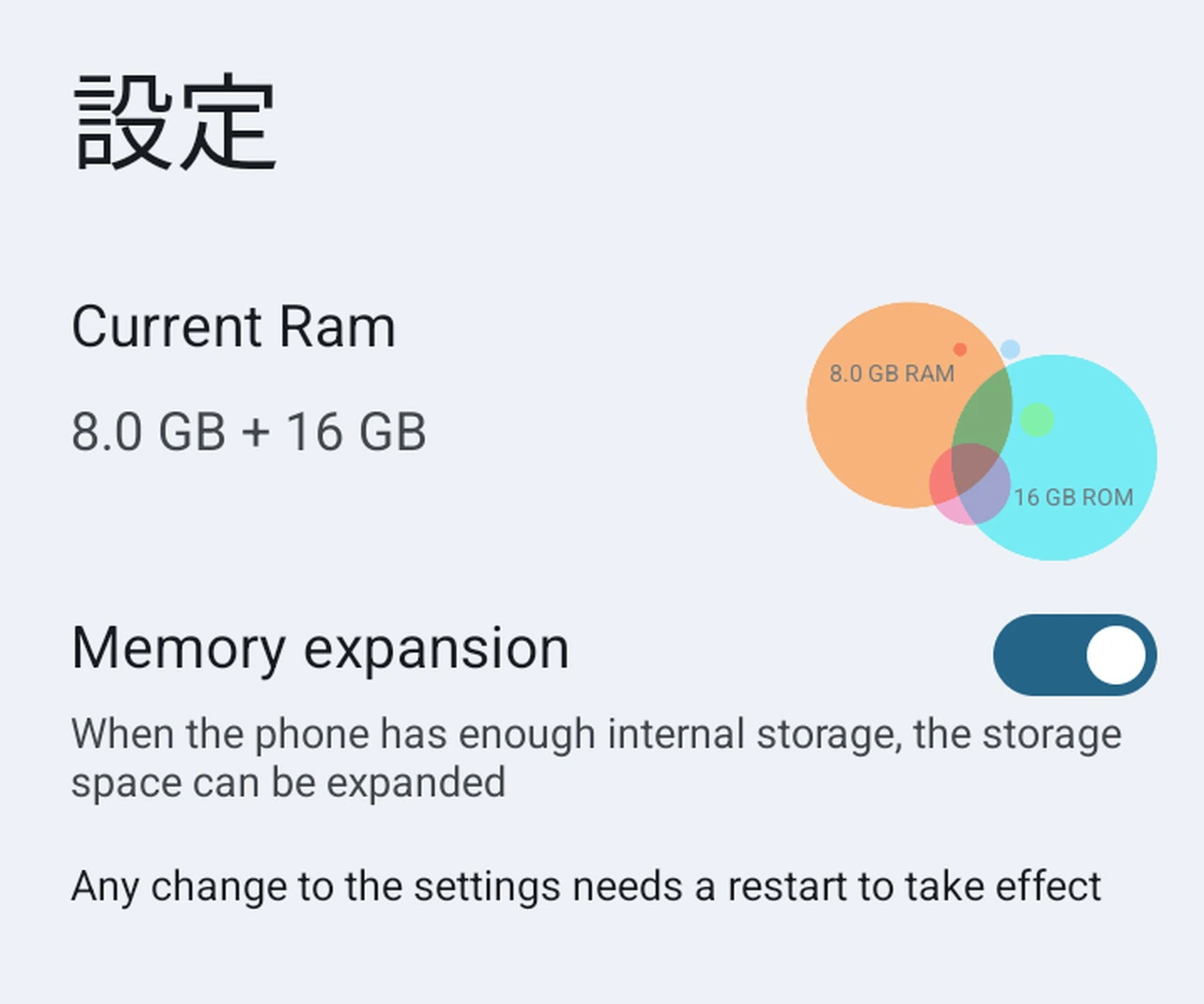なお、設定アプリから16GBの仮想メモリ(RAM)拡張を行うことも出来る。