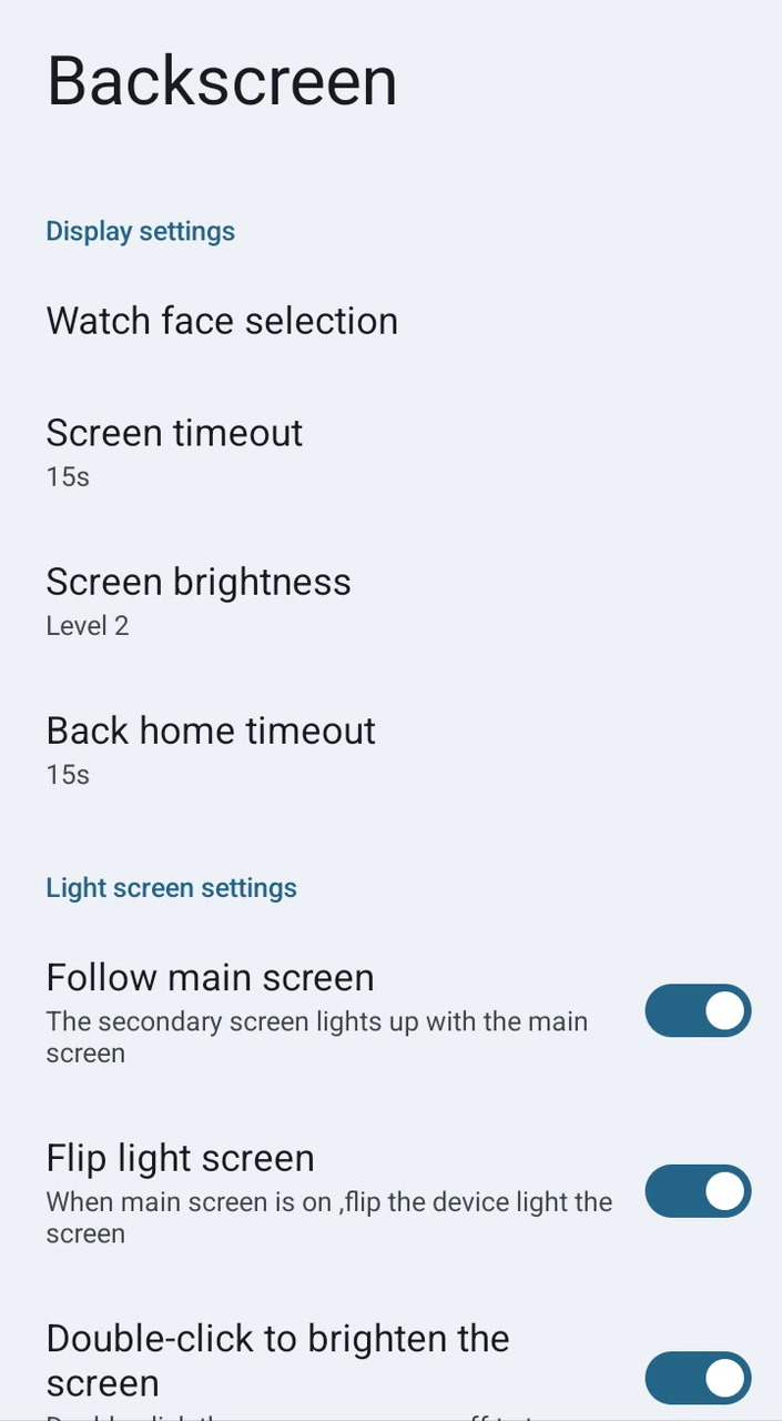 ▼背面スクリーンの起動時間や明るさなども細かく調節可能。
