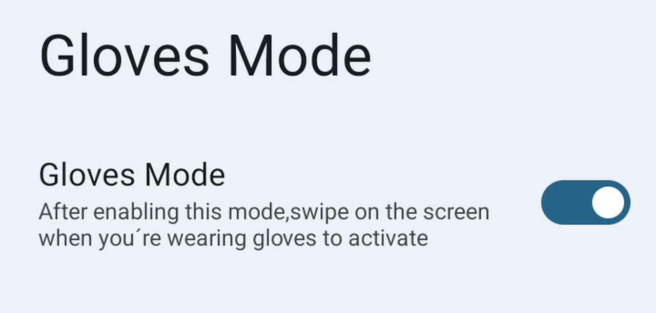 本製品はグローブモードに対応しており、手袋を装着した状態でも画面のタッチ操作を行うことができる。
