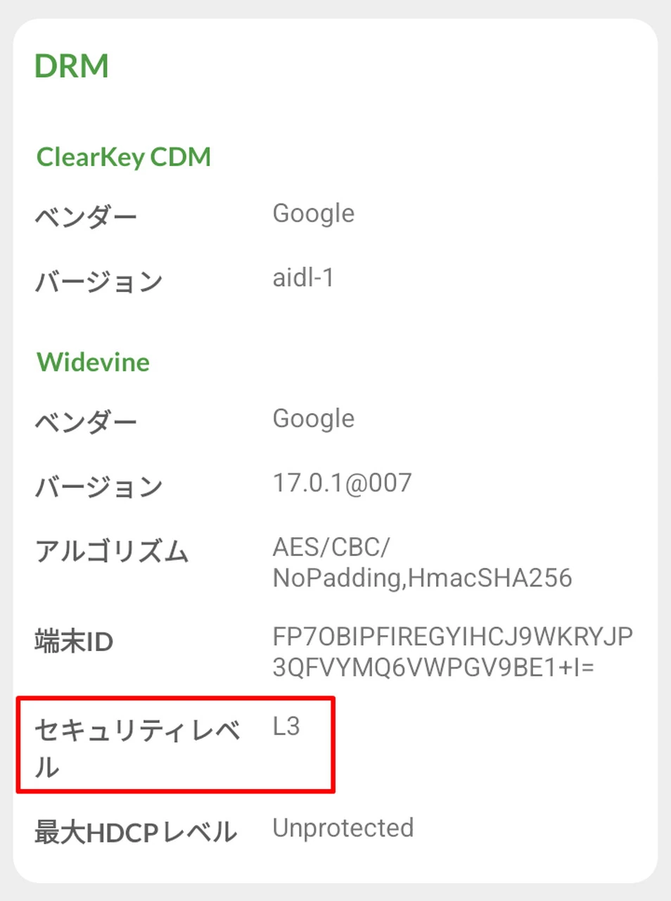 ただし、WidevineがL3サポートな点はやや残念だ。