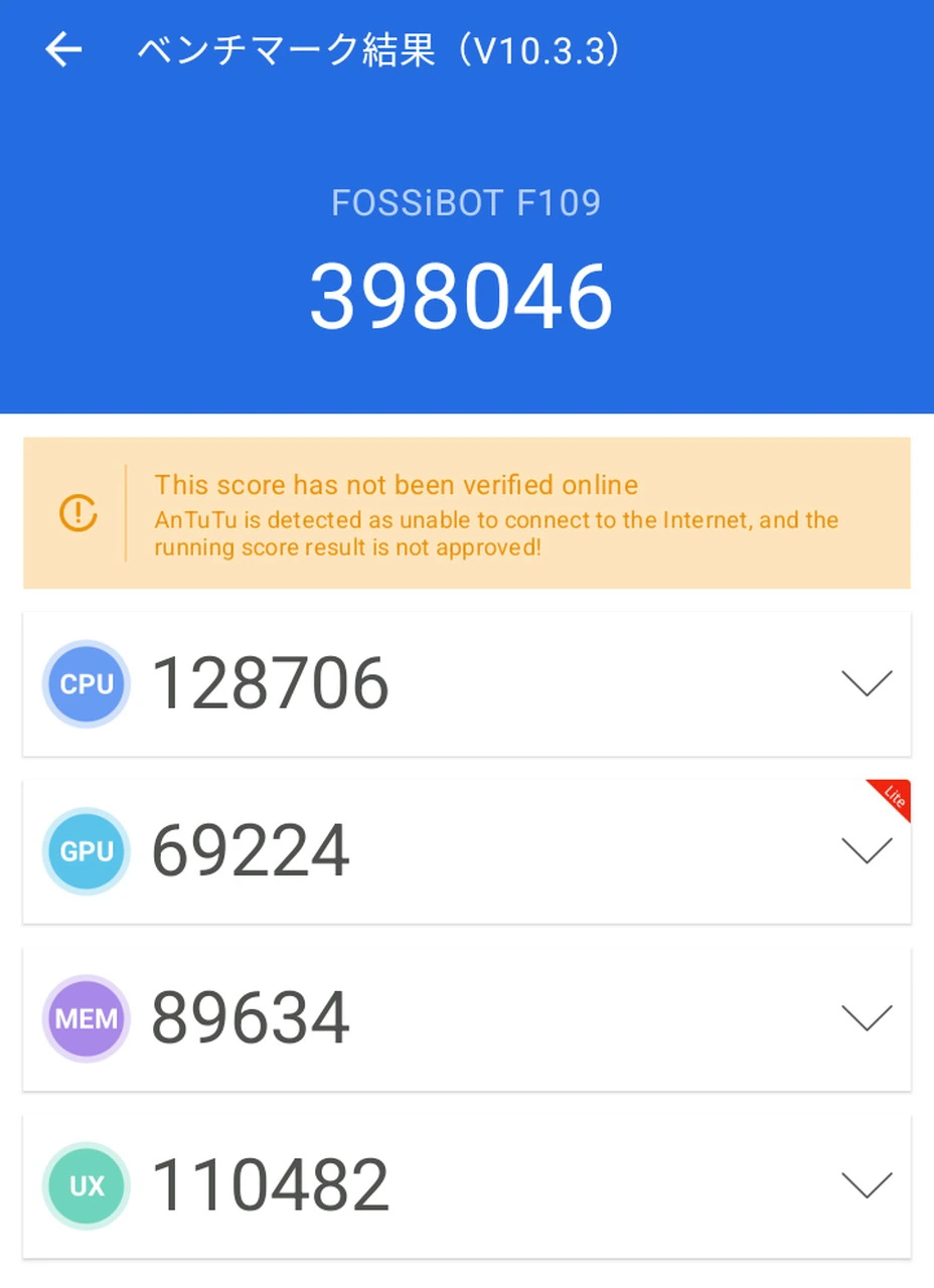 本機について、スマホ・タブレット端末の性能を測ることのできる『AnTuTuベンチマークテスト』を実施してみた。