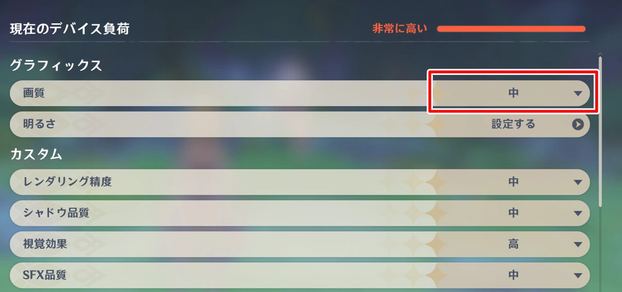 ▼さすがに画質設定を中以上に上げると負荷は "非常に高い" の状態となり、顕著なフレームレート低下が発生した。