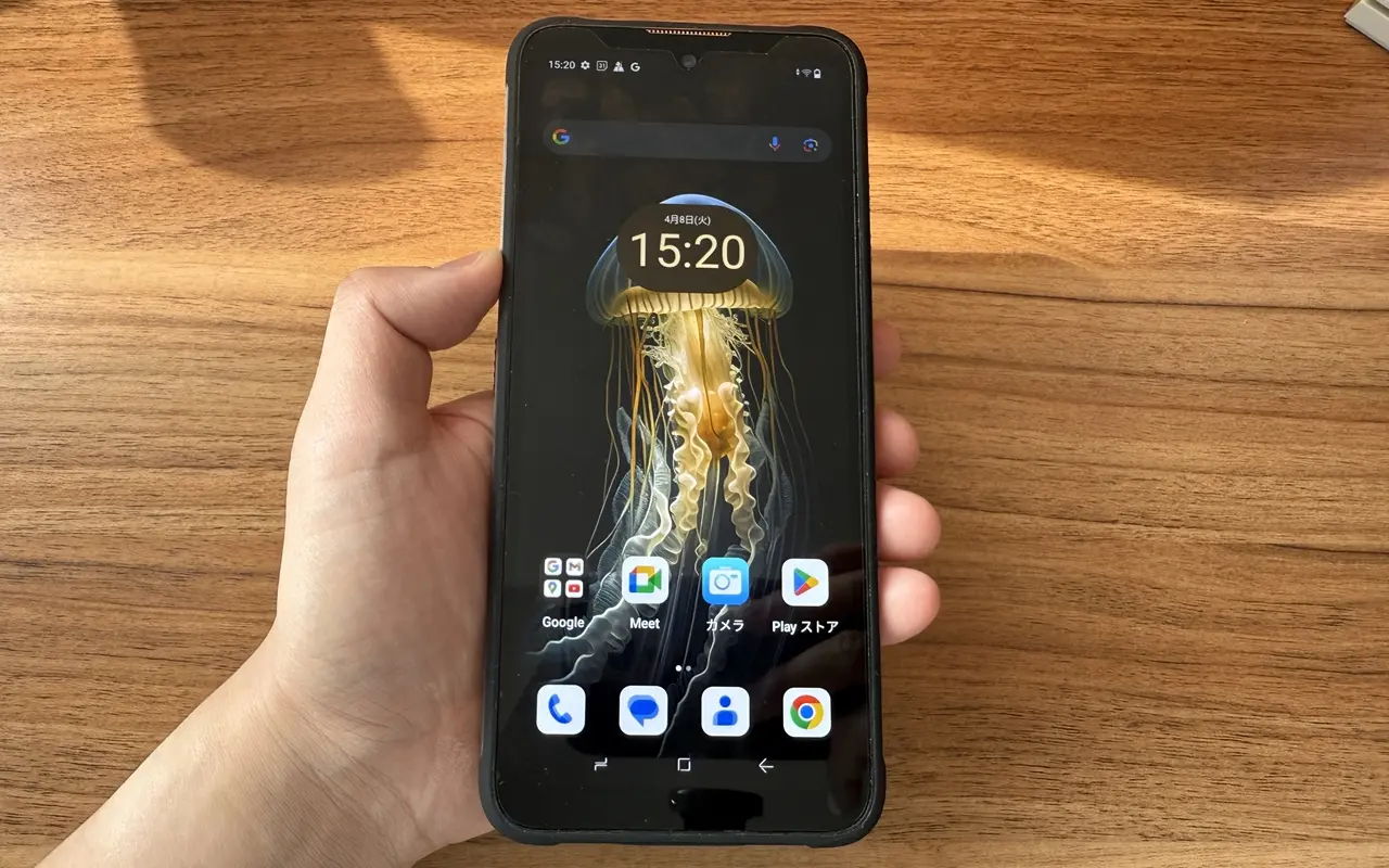 アウトドア使用を前提としたタフネススマホであれば、正直もっと輝度がほしかった(最低でも700以上)。屋内使用では問題ないが、屋外の直射日光が当たる場所では画面の見づらさを感じるだろう。