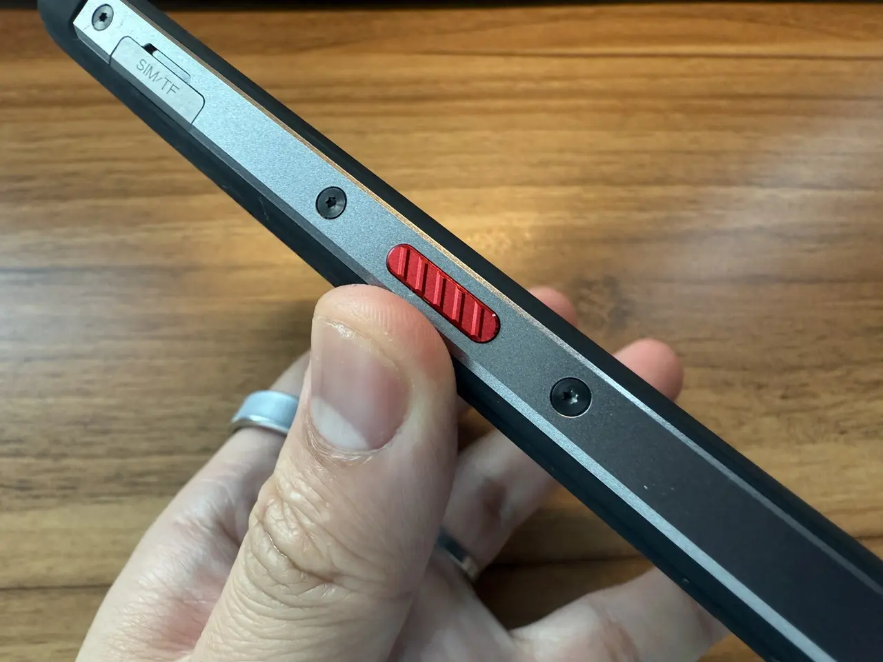 本製品では、筐体左側面に用意された赤色のカスタムキーに、設定アプリから好みの機能を割り当てることができる。