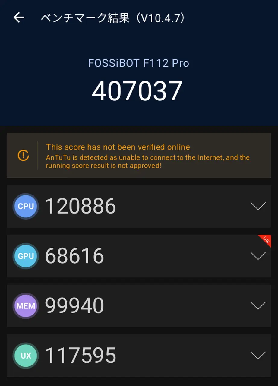 本機について、スマホ・タブレット端末の性能を測ることのできる『AnTuTuベンチマークテスト』を実施してみた。