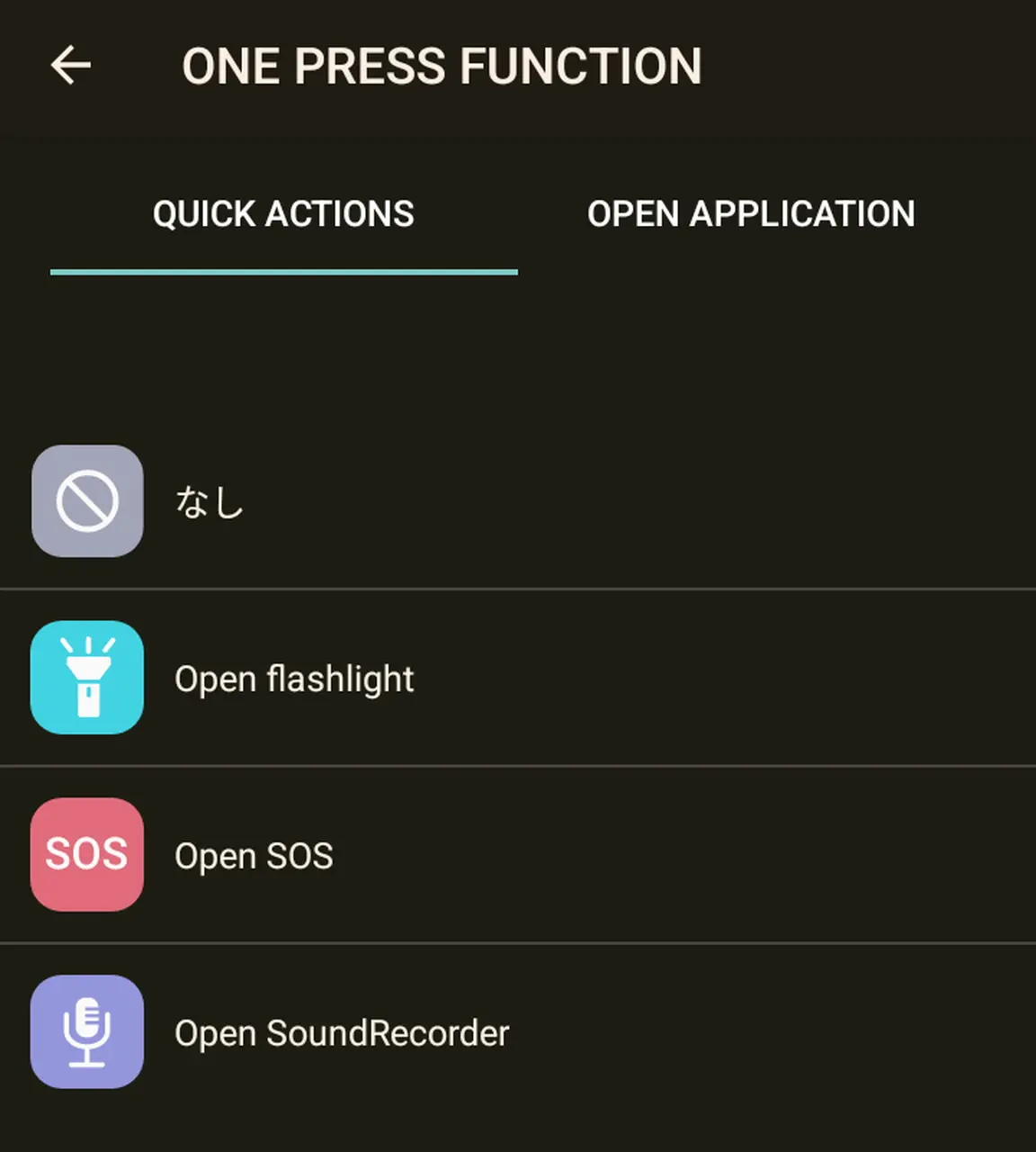 ▼カスタムボタンを押して、フラッシュライトやSOS発信などを即座に起動することも可能。