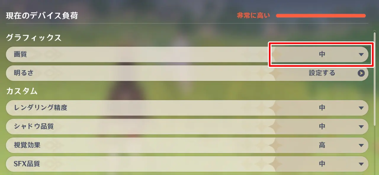 ▼さすがに画質設定を中以上に上げると負荷は "非常に高い" の状態となり、顕著なフレームレート低下が発生した。