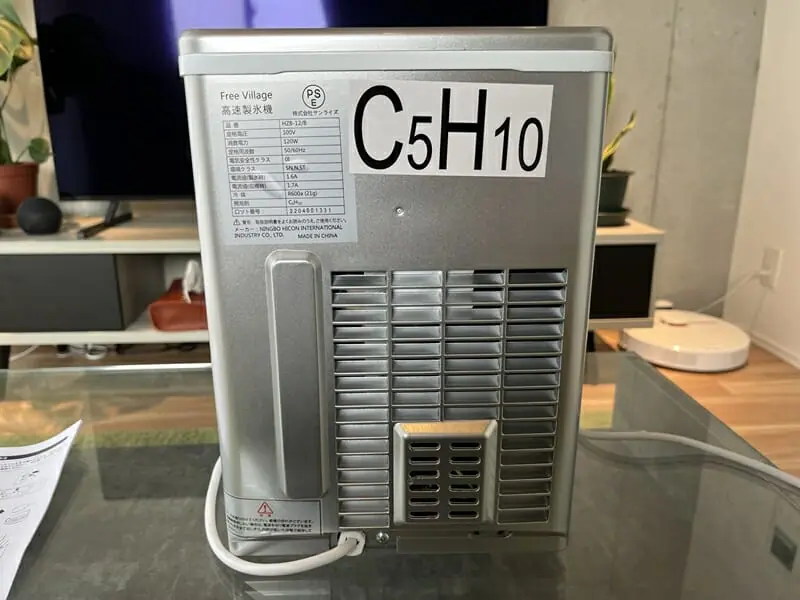 まず製氷機背面から伸びる電源コードをコンセントに接続する。