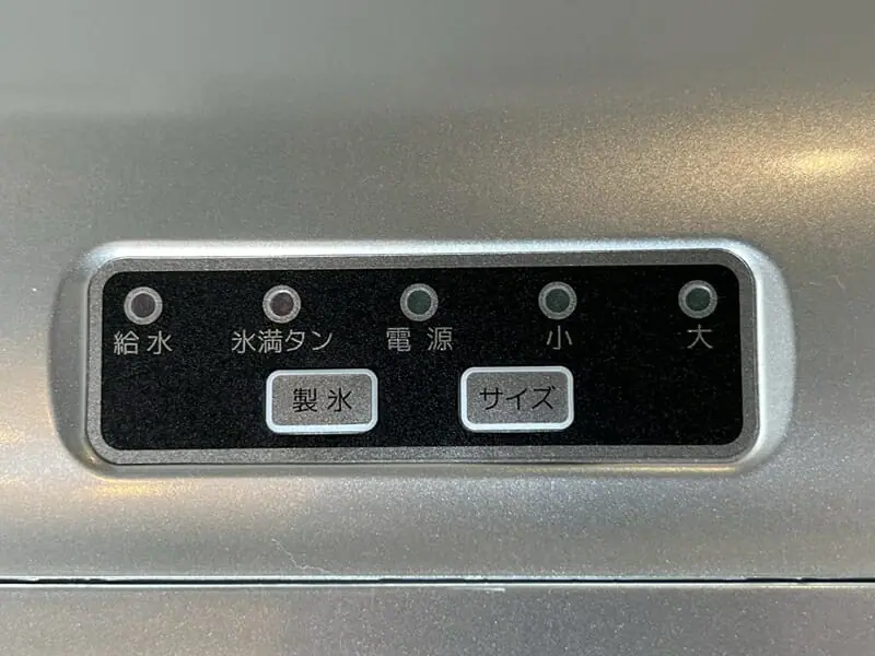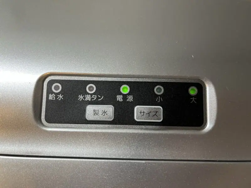 そして上部の "サイズ" ボタンを押して、製氷したい氷のサイズを選択する。ちなみに初回使用時には、内部を冷やすために "大" サイズでの製氷が推奨されている。