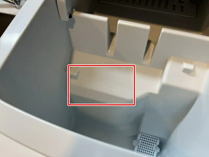 ▼製氷機内部のタンクには最大2Lの水が入る。