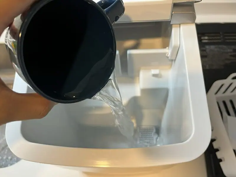 続いて、製氷機のタンクへ水道水を注ぎ込む。