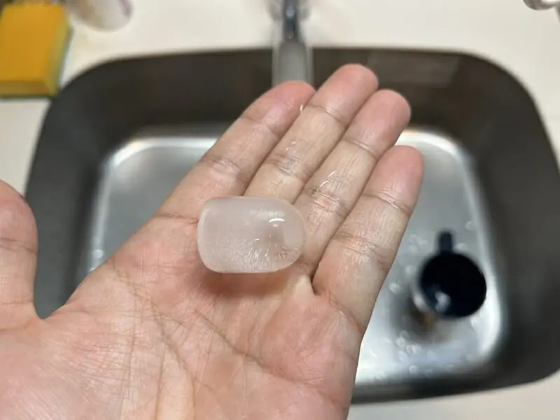 上述した製氷機構により、製氷された氷は下画像のような中央穴あき構造になっている。