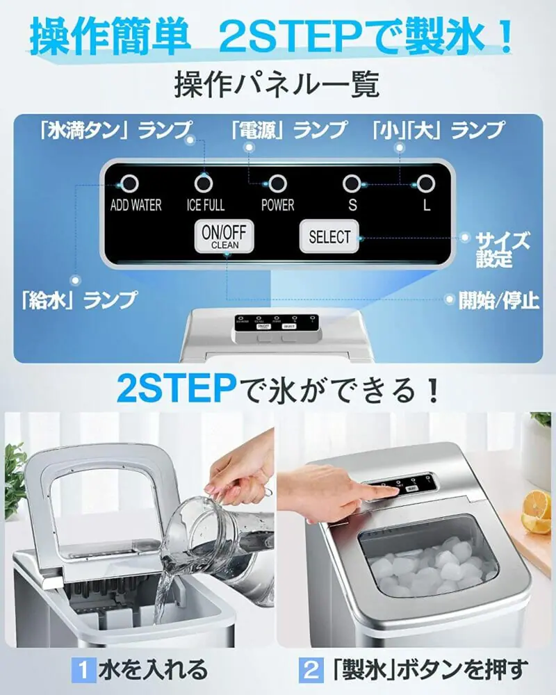 水を入れてサイズ選択の2ステップで製氷できるシンプル設計のため、誰でも簡単に利用できるだろう。