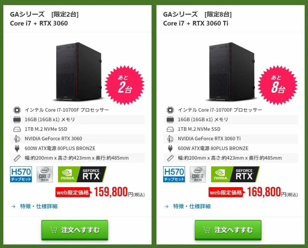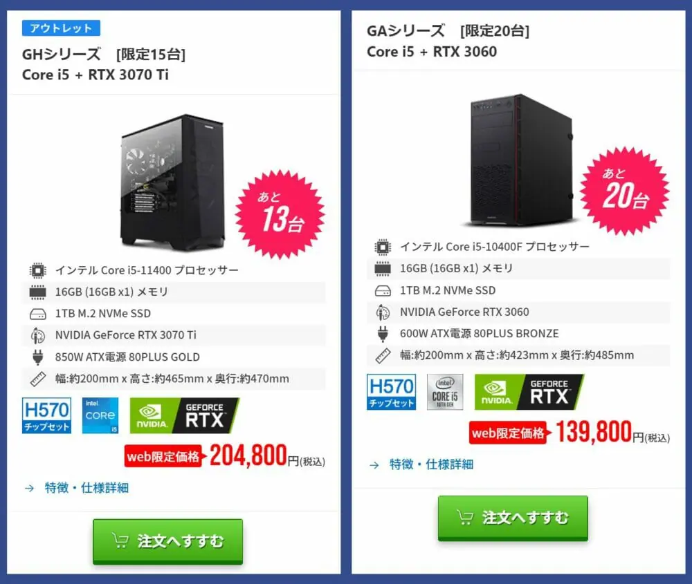 オススメ②:GHシリーズ [限定15台] Core i5 + RTX 3070 Ti