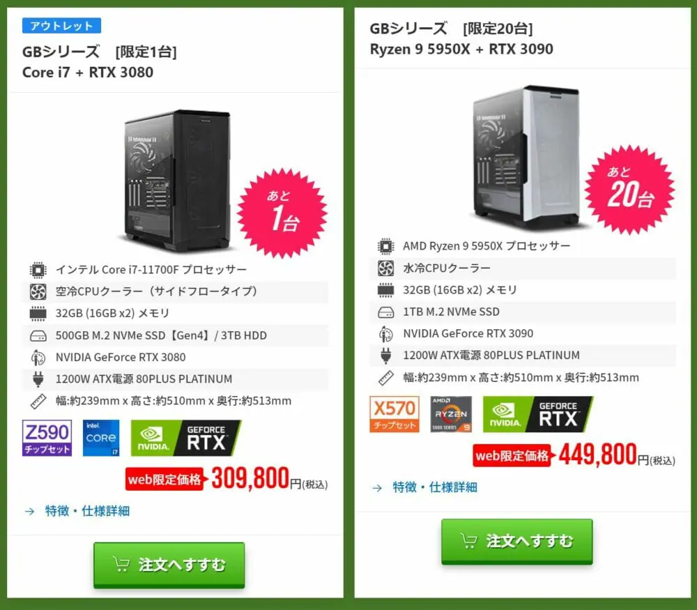 オススメ①:GHシリーズ [限定20台] Core i7 + RTX 3080 Ti