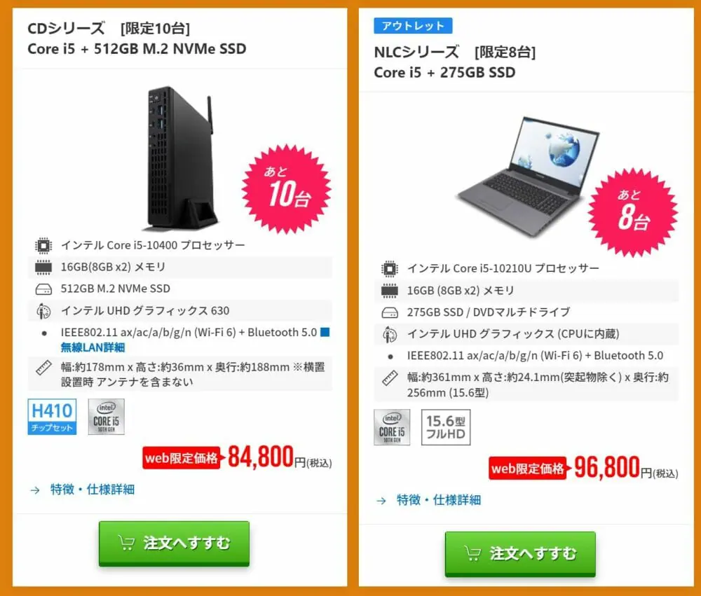 ▼そしてゲーミングPCだけでなく、ビジネス用途に適したリーズナブルなPCもセール価格で販売されています。