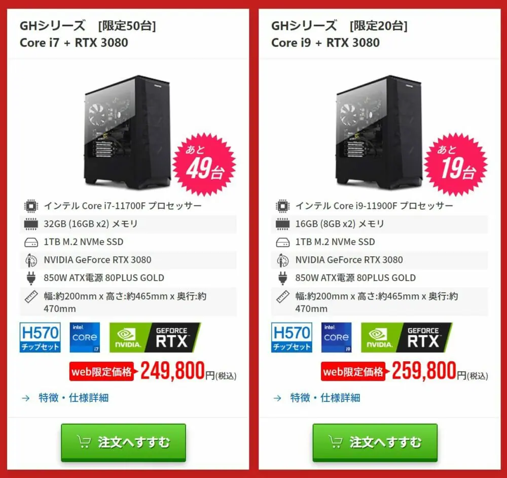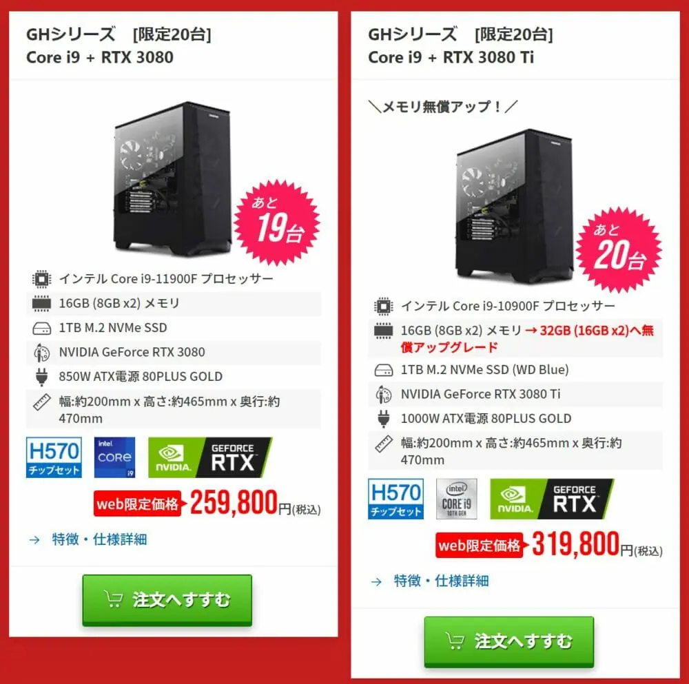 オススメ①:GHシリーズ [限定20台] Core i9 + RTX 3080 Ti