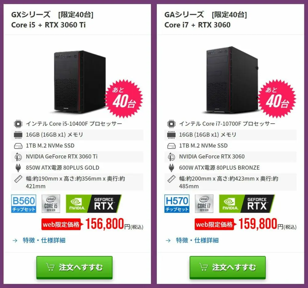 BTOパソコン・ゲーミングPCの販売を手掛ける大手通販ショップ『マウスコンピューター』。 同サイトにおいて、『RTX3080Ti』や『RTX3080』などのハイエンドグラボを搭載したゲーミングPCから ...