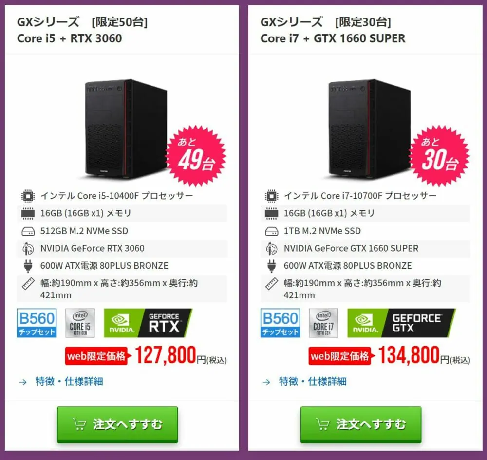 オススメ③:GXシリーズ [限定50台] Core i5 + RTX 3060