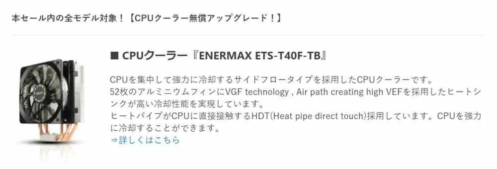 ちなみに、本セールの対象商品はすべて【CPUクーラー無償アップグレード】の対象となります。