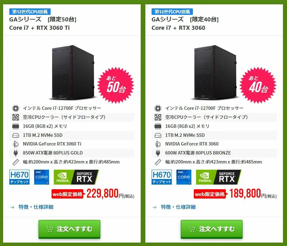 オススメ②:GHシリーズ [限定50台] Core i7 + RTX 3070 Ti
