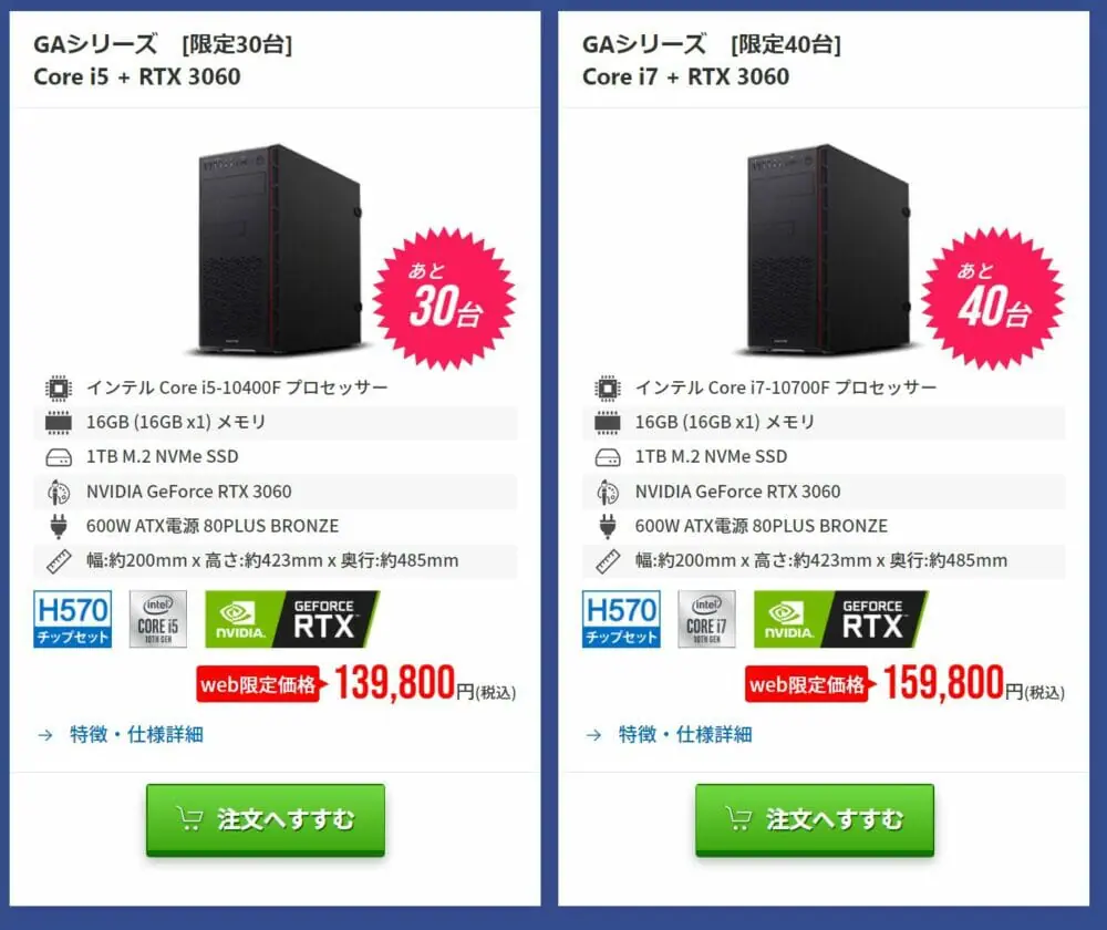 オススメ②:GAシリーズ [限定20台] Core i7 + RTX 3060 Ti