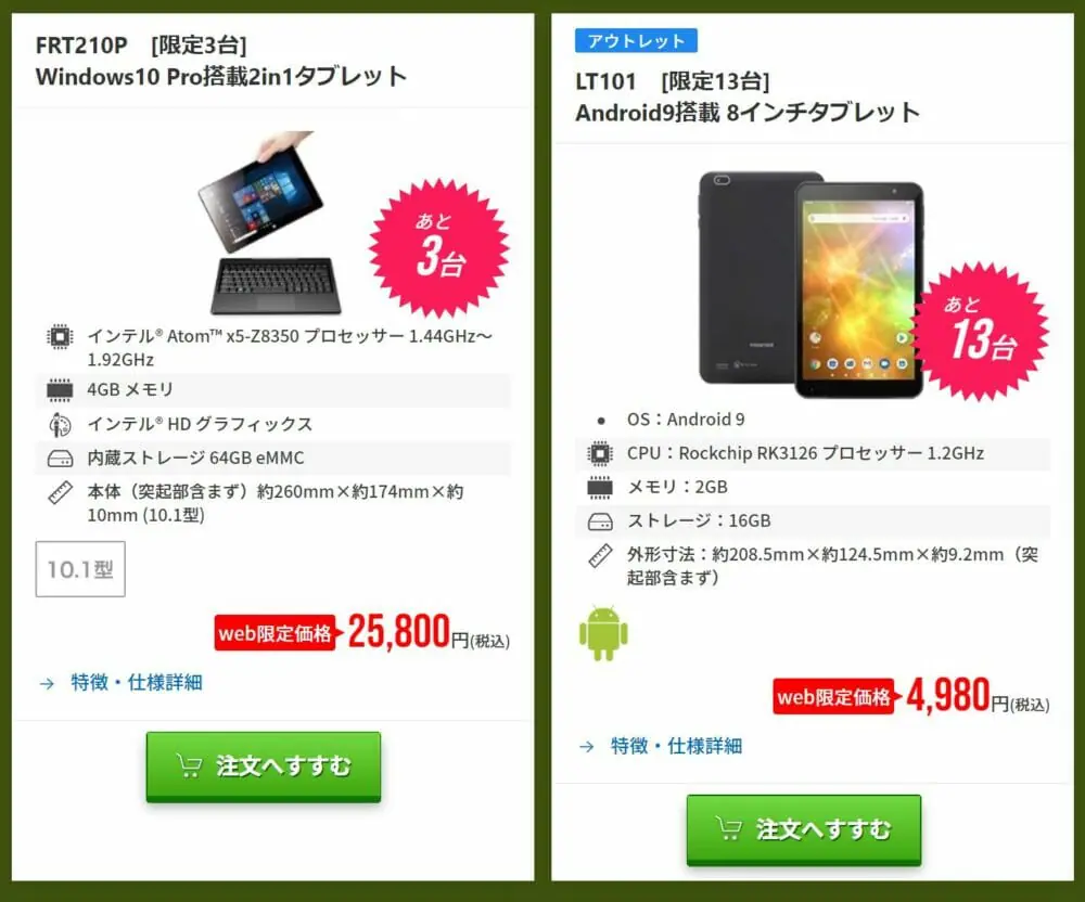 ただし上述した通り、いずれの製品も数量限定であり、用意されている数量はあまり多くありません。