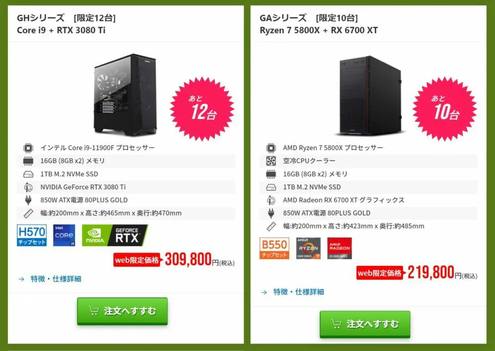 オススメ①:GHシリーズ [限定12台] Core i9 + RTX 3080 Ti