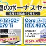 第14世代Core CPU搭載モデルが大幅割引!フロンティア『究極のボーナスセール』開催