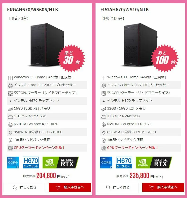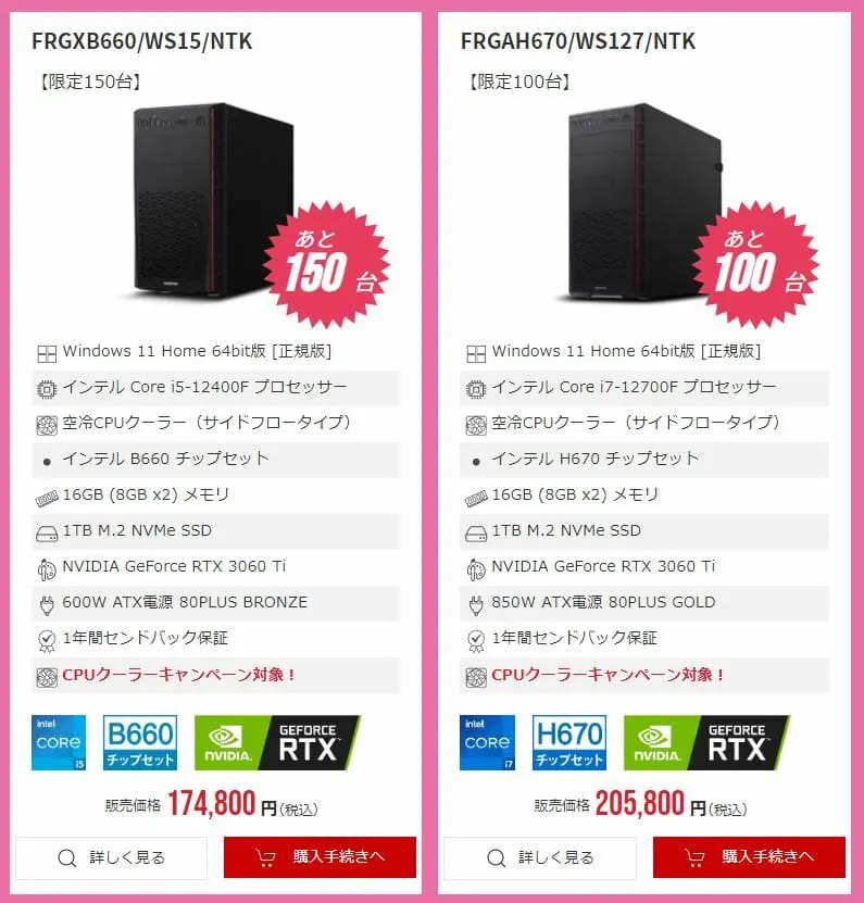 オススメ②:FRGH670/WS127 ※CPUクーラーキャンペーン対象!