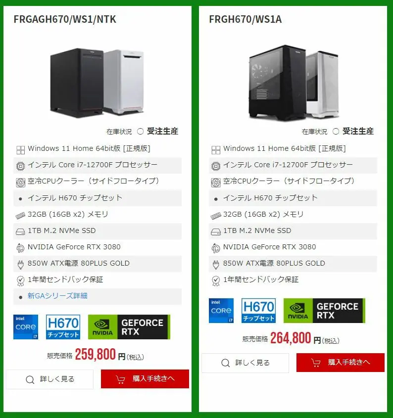 ▼RTX3080&第12世代Core i7搭載モデルは税込25万円台の非常にお得な価格に!