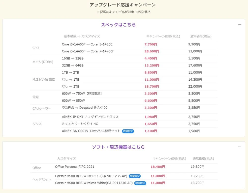 なお、一部のモデルはメモリ増設、SSD、電源カスタマイズ等の割引キャンペーン対象となっています。Officeソフトやゲーミングヘッドセットも割引対象です!