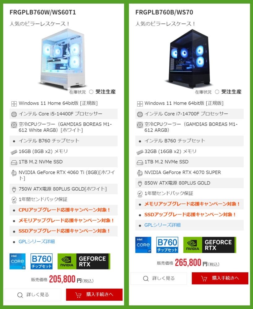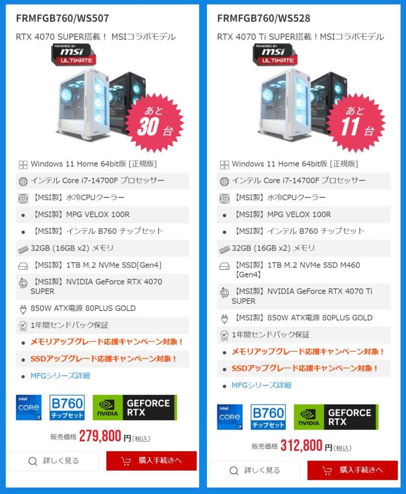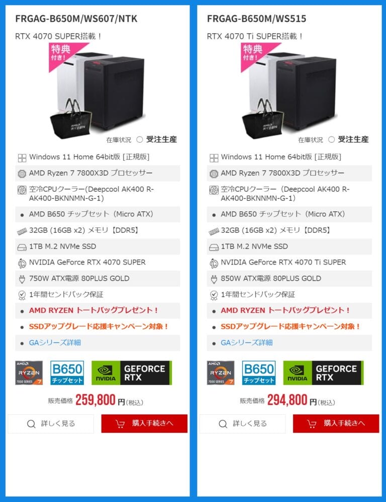 同じく最新グラボである『GeForce RTX 4070 SUPER』搭載モデルもラインナップに含まれています。