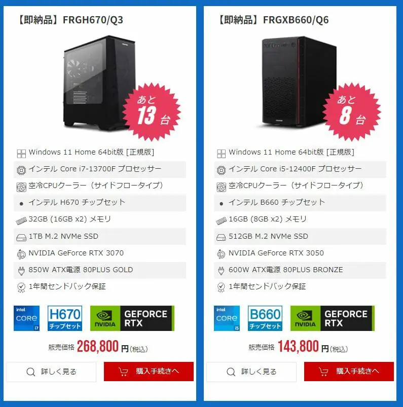 ▼第13世代Core i5+RTX4060Ti搭載モデルは、なんと税込18万円台という特価で販売中!