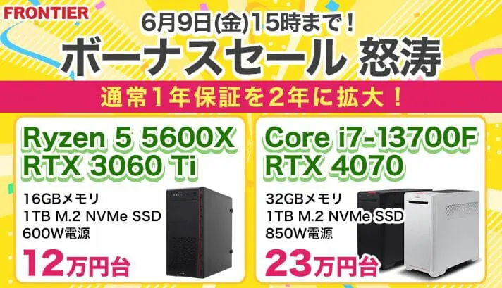ハイエンドゲーミングPCが大特価!フロンティア『初夏のSUPERお得市』セール開催