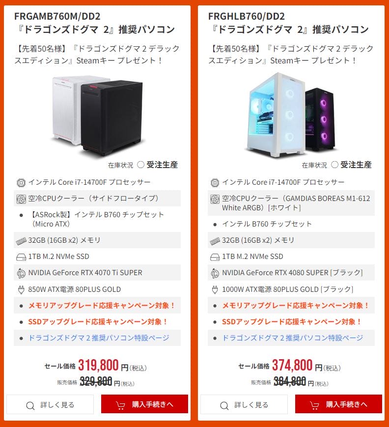 オススメ②:FRGAMB760M/DD2『ドラゴンズドグマ2』推奨パソコン