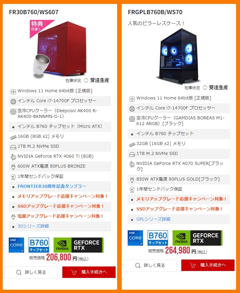 以上の通り、ミドル級からハイエンド級まで、非常に幅広いゲーミングPCを非常にお得なセール価格で購入することが出来ます。