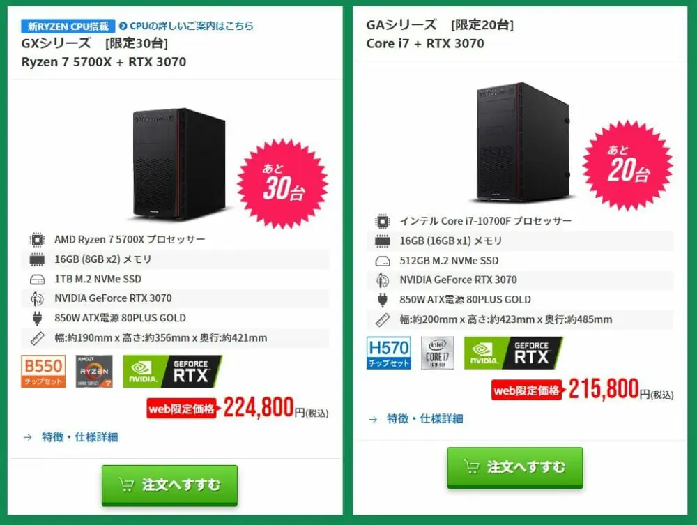 ▼『RTX3070』や『RTX3050』を搭載したお得なエントリーモデルも、更にお安く購入可能!