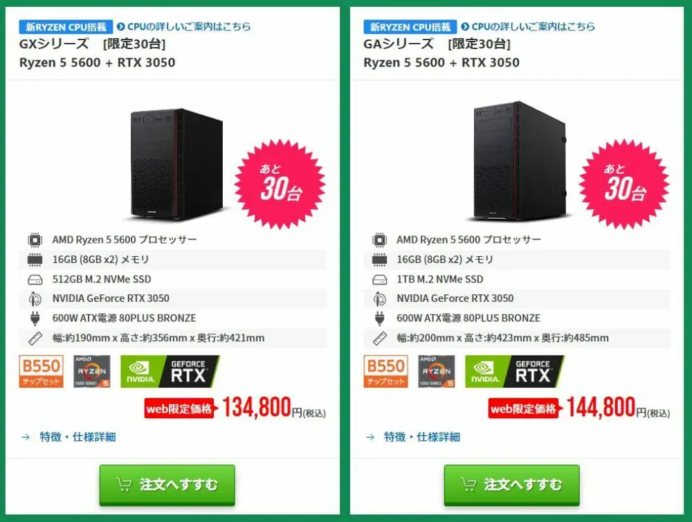 この構成で税込32万円台はかなりお得であると言えます。売り切れ必至です。