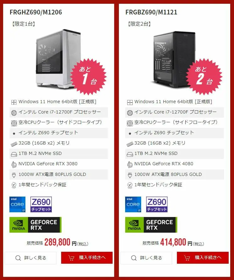 ▼最上級グラボである『RTX4080』と第12世代Core i7搭載のハイエンドモデルがお得な価格で販売!