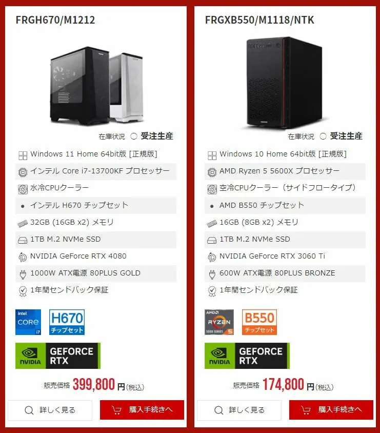 今回実施される『FRONTIER 大感謝祭』では、ハイエンド級からミドル級まで、非常に幅広い価格帯のゲーミングPCがセール対象となっています。