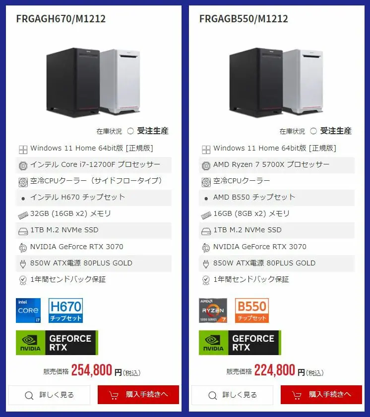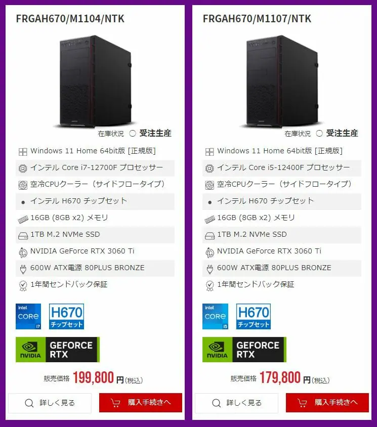 ▼『RTX3070Ti』搭載のハイエンドモデルもお得な価格で販売されています。