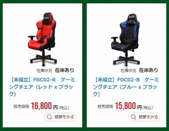 またリーズナブルな価格のゲーミングチェアまで用意!