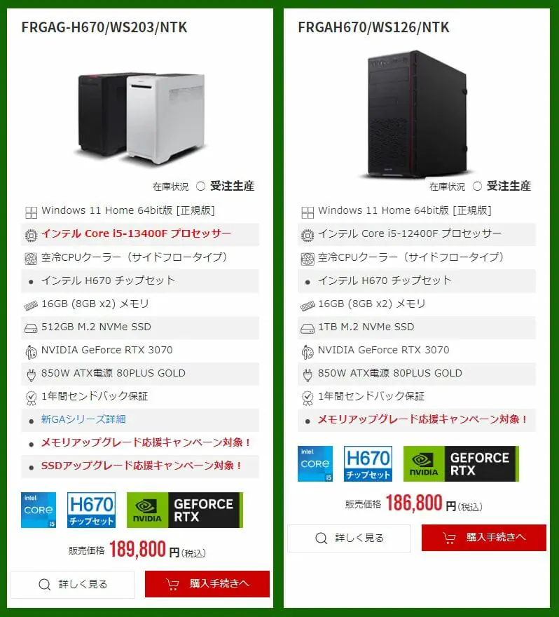 以上の通り、ミドル級からハイエンド級まで、非常に幅広いゲーミングPCを非常にお得なセール価格で購入することが出来ます。