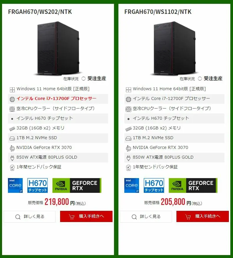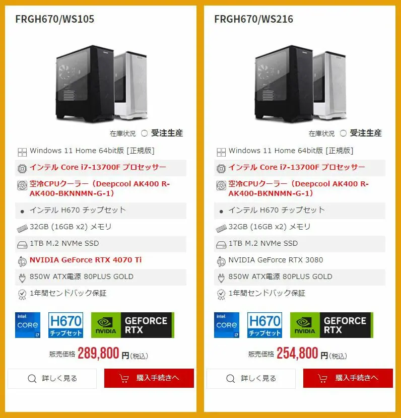 最新のRTX4070Ti搭載モデルがラインナップに並んでいる点も要注目。