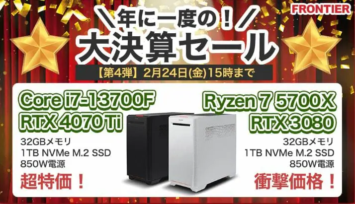 ハイエンドゲーミングPCが大特価!フロンティア『売り尽くし!決算感謝祭』セール開催